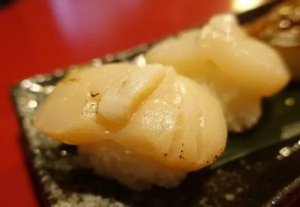 干貝像漢堡一樣中間切開整個蓋在握壽司上