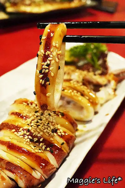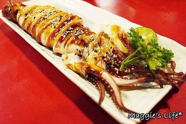 「烤透抽」100元,整隻才一百元CP值很高,烤出適當的熟度再加上特調醬汁,最後再灑上滿滿的芝麻,香香QQ,也是一道很棒的下酒菜。