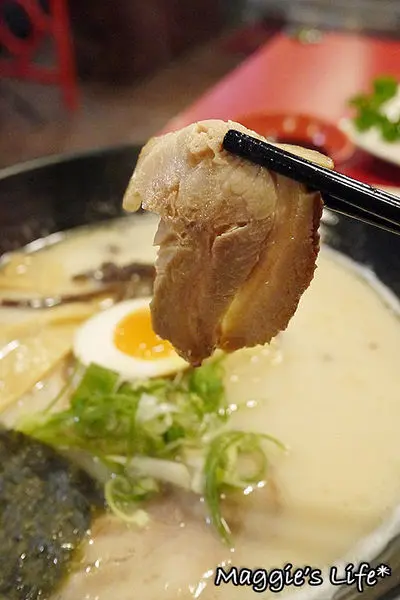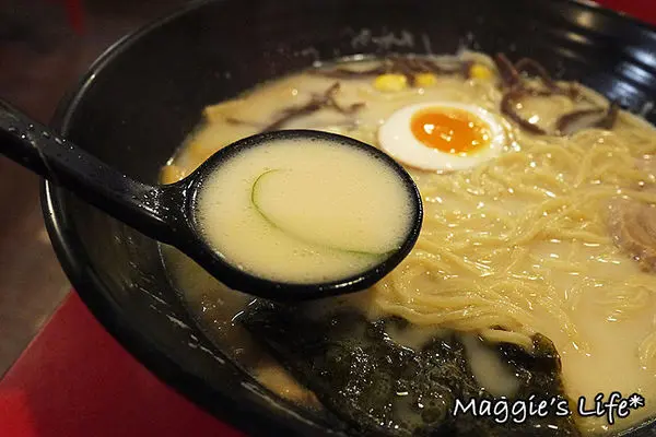 乳白色的豚骨湯汁,濃郁不油膩,一大碗我們都喝光光。