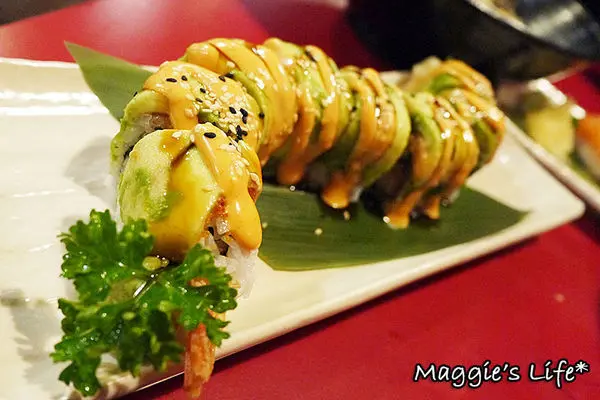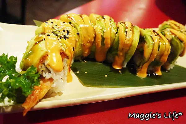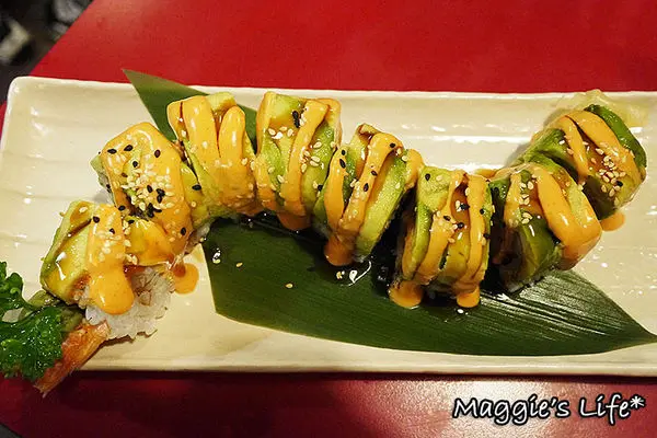 因為有炸蝦在裡面一咬下去有酥脆的口感,清爽的酪梨在咀嚼中分泌出甜味,讓這道毛毛蟲卷清爽又好吃!我們都蠻喜歡這個味道。