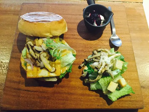 日式醬燒豆腐堡160元(附沙拉甜點及紅茶)