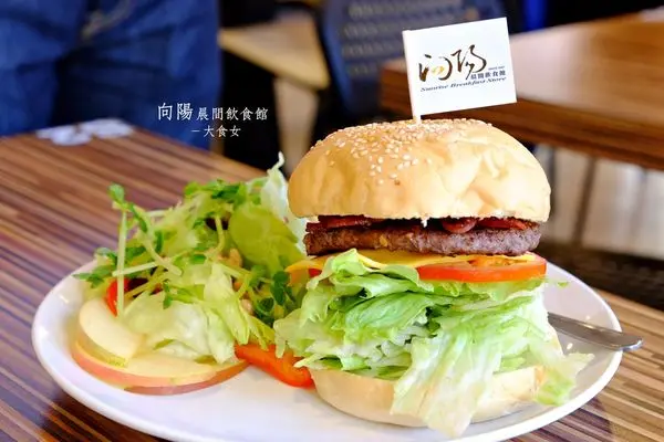 向陽早午餐的選擇很多樣,蘿蔔糕、蛋餅、薯餅、三明治總匯、漢堡、鐵板麵等,