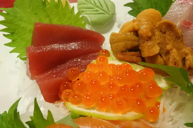 一顆顆鮭魚卵與鮮紅的鮪魚肉!