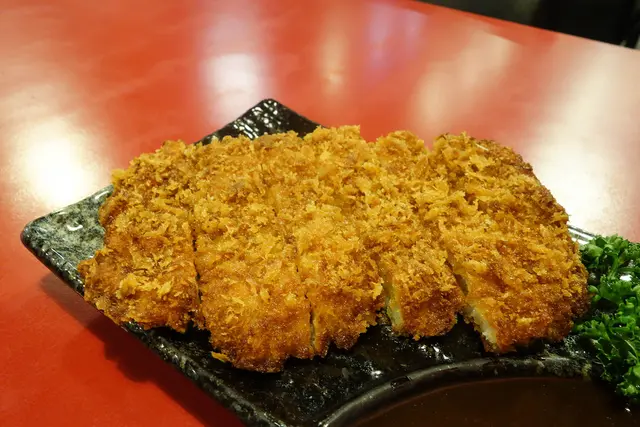 日式炸豬排搭配店家自製添加入蘋果泥的豬排醬