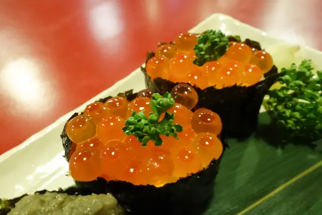 鲑魚卵碰在口腔中!