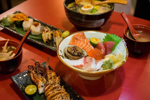 除了有一人一份的丼飯、拉麵、定食,也有壽司卷、生魚片、烤物等等適合多人分食的菜色