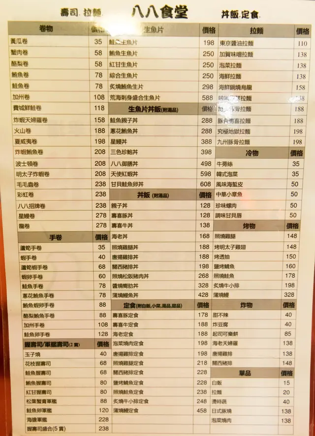 位在中山路的八八食堂提供超多元的日式料理選擇,鄰近板橋車站、新北市政府