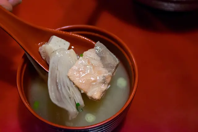 海鮮丼附上的味噌湯,裡面也是滿滿的料,有鮭魚肉、豆腐
