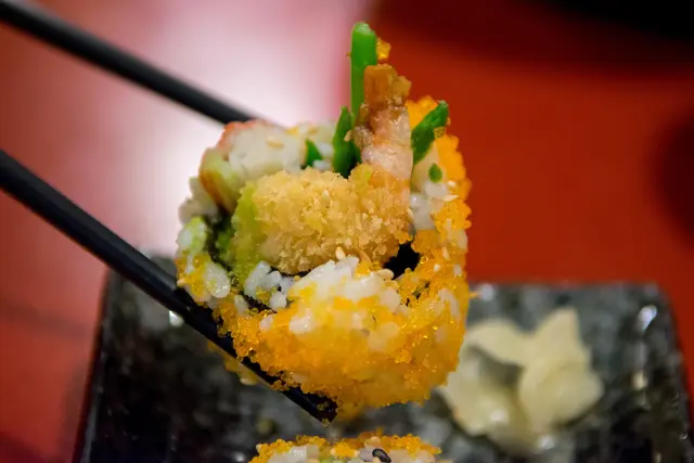 啵啵啵的口感像炸彈一樣刺激著味覺,帶有海味的濃郁口味搭著酸甜醋飯也很不錯