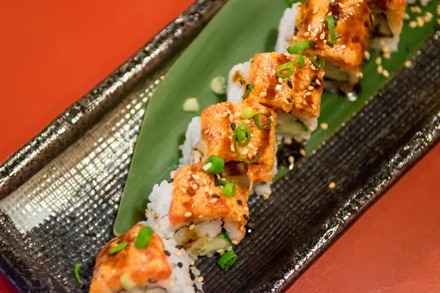 一整隻炸蝦貫串壽司卷,那酥脆的外皮和Q彈蝦肉與壽司完美結合,的確是還蠻好吃的做法