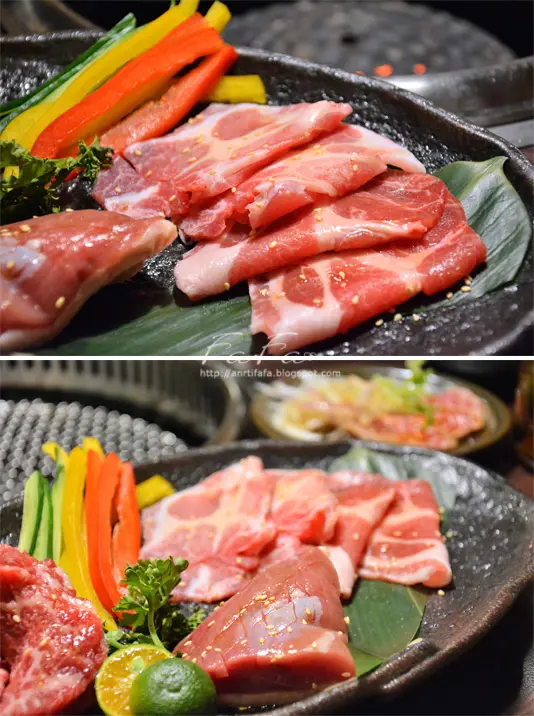 套餐中的肉品六選三,黑毛極上和牛小排 / 蘭陽櫻桃鴨 / 鹿兒島黑毛豚梅花
