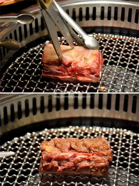 這塊部位再尺寸如果拉長來看是蠻大一塊,所以專人分了三次來烤,剪一塊烤一塊 。