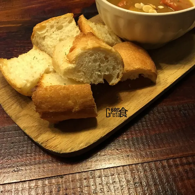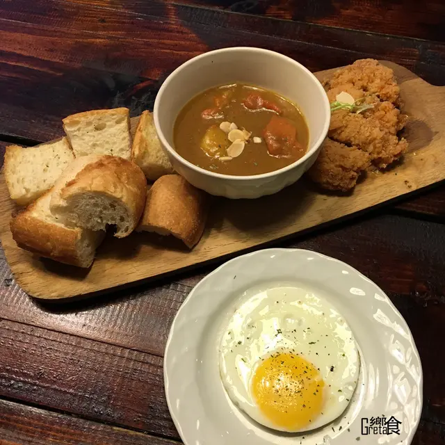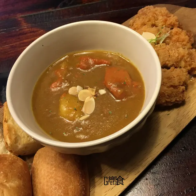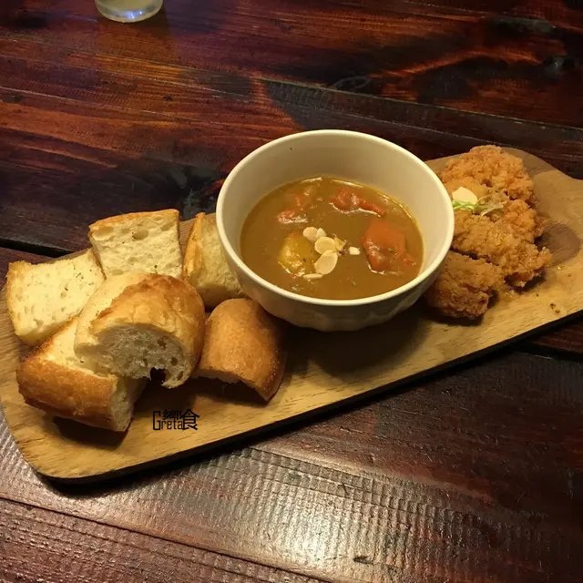 咖哩微辣脆雞搭麵包 $130