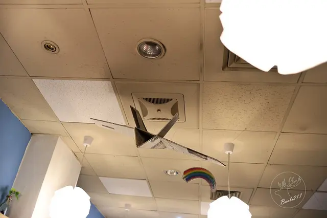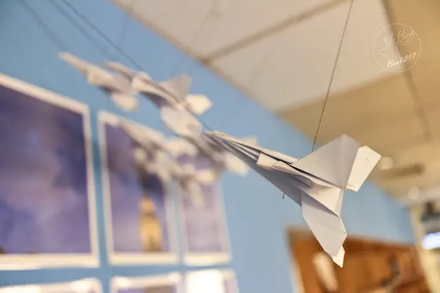在182鬆餅廚房,有許多跟飛機有關的擺設,例如這有童年意味的紙飛機。