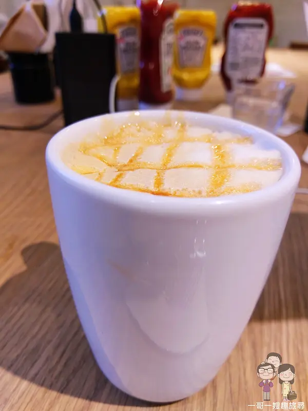 等待的同時,我們點的飲料來了,這杯是焦糖瑪奇朵,
