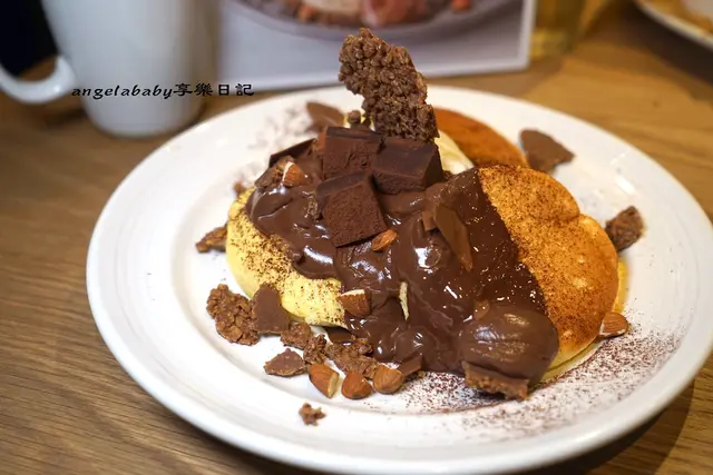 堅果與自製巧克力酥餅讓綿密細膩的舒芙蕾鬆餅一起入口更趣味