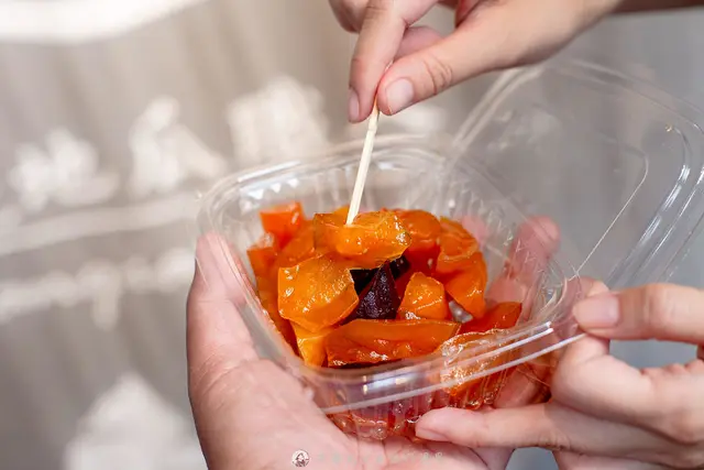 Q彈蜜地瓜看起來就像是糖果或是甜點,光看那個色澤就覺得味道應該很好吃,入口吃起來很Q彈,很像是在吃軟糖的感覺,甜味也很足夠,但不會讓你覺得很膩,拿回家冰之後再吃也很相當不錯,一下子一整盒就吃完了,真的蠻可怕的。