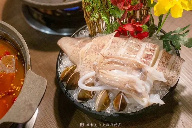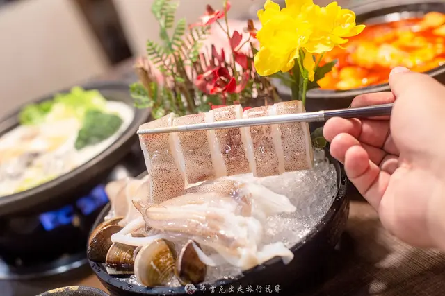 森師兄軟絲海鮮鍋直接是給你整隻的軟絲,份量上絕對是足夠的,軟絲的肉整個很厚實而且夠新鮮,吃起來很脆彈,搭牛奶鍋超棒的,吃起來會更鮮甜。