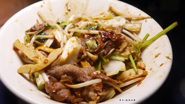 配菜有豆干、豆芽菜、2~3樣青菜、紅蘿蔔、洋蔥、麵條