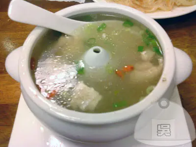 女兒看到這可張大了眼睛,說湯的碗怎那麼特別?我跟她說:『這是鍋子不是碗,妳沒看卡通-中華小廚師的小當家有介紹過嗎?』,她回說:『對喔!這樣好像受熱比較平均,湯會比較好喝。』。我只跟她說:『如果妳念書也這麼厲害就好了!』。但只見她顧著喝湯直說好喝……。