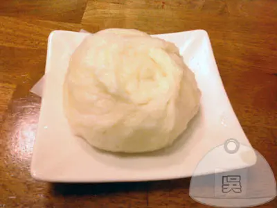 這也是當地著名小吃。包子皮一層一層,口感還不錯。由於我們點鹹的口味,內餡吃起來的口感像客家包福菜的肉包,但這口味清淡許多。能不能吃得慣或許要看個人喜好。