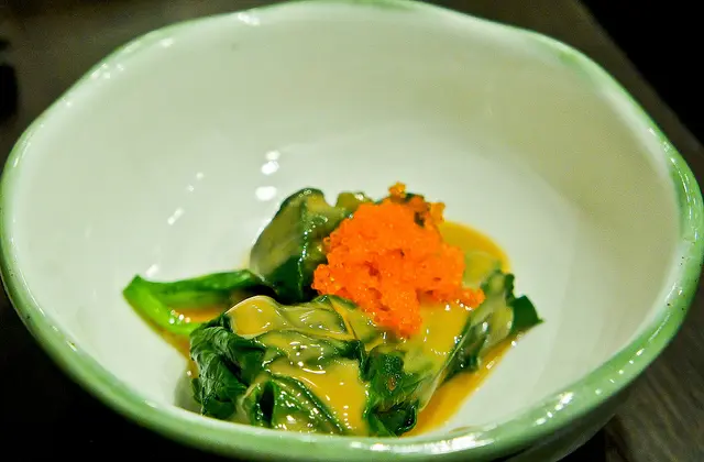 青菜加上特製醬汁加魚子