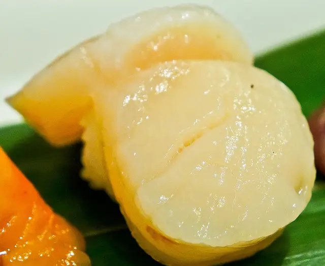 干貝算中等大小( 近年來連海壽司的干貝都變小了,要吃便宜又大顆的干貝握壽司似乎很難 )