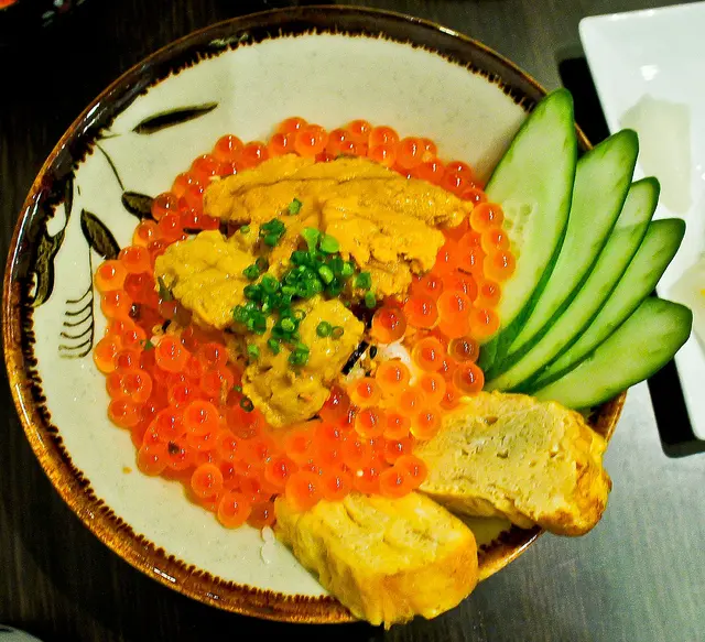 比目魚緣側, 鮭魚卵軍艦等