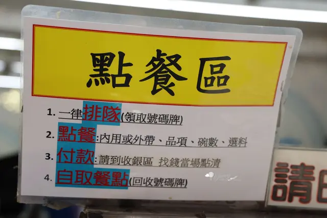無論是外帶或內用都一律排隊,如果人太多會發放號碼牌。輪到自己後就點餐、付款然後自霰餐點。