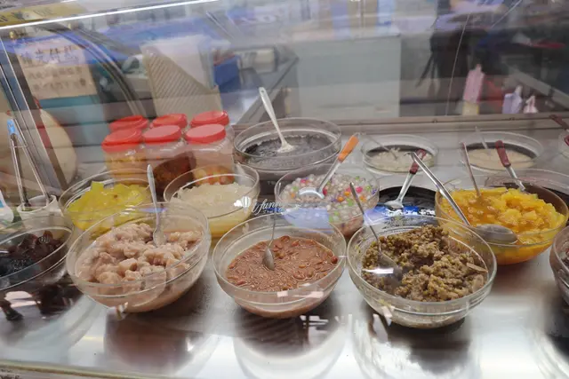 良 古早味黑糖剉冰的配料跟大部份的冰店相差不遠,整個餐檯整潔明亮,看起來就很好吃。