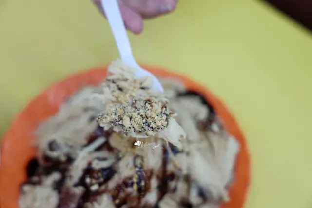 由於服務人員告訴我們,因為配料放上冰上面,為了怕放料時不小心跌出盤外,所以一開始冰量沒給很多,等我們拍完照,就可以再要求加冰的服務,因為我們怕甜,就沒有再加黑糖醬了!大家可以發現良 古早味黑糖剉冰的冰,是屬於比較細綿的,冰晶感少一點,入口即化一樣清涼!