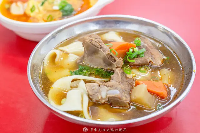 《河南砂鍋手工扯麵》的紅燒排骨麵不是外面那種豬排骨放在湯麵裡面的,只一般苦瓜排骨湯或者是冬瓜排骨湯的排骨,帶骨吃起來真的很嫩也算是蠻有口感的,最厲害的還是那個麵體,沒想到這麼厚還是很吸湯頭。