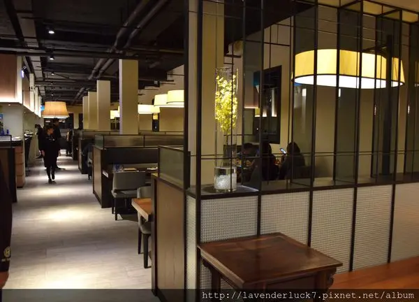 從候位區往內看,窗櫺後就是深深無底的寬廣用餐區