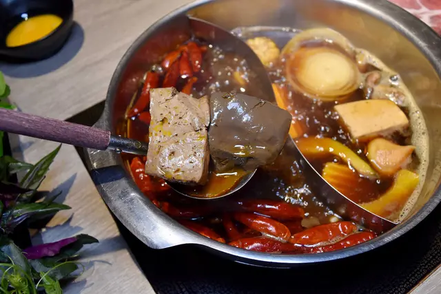 麻辣鍋本身的花椒風味是香麻不辣.與櫻桃鴨肉是match的