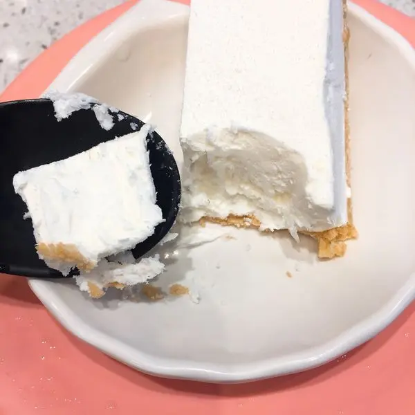 因為太冷怕影響味感,等待解凍三分鐘後,再吃覺得像濃濃的起司跟奶油味的雪花冰,這種餅乾底是我愛的,厚度也剛好,就是有點微甜,偏好鹽味的餅底。