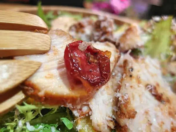 香烤雞胸肉不乾柴,有事先醃漬過,散發淡淡的香料味