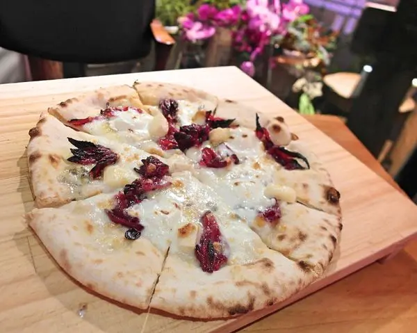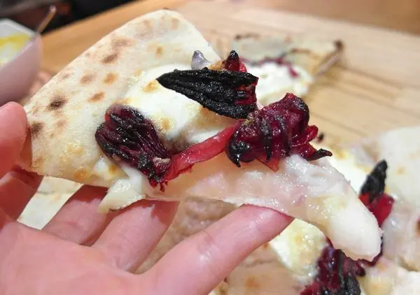 難得有讓男孩誇讚的披薩,而且還是他從未吃過的洛神花