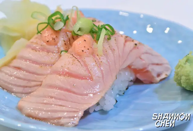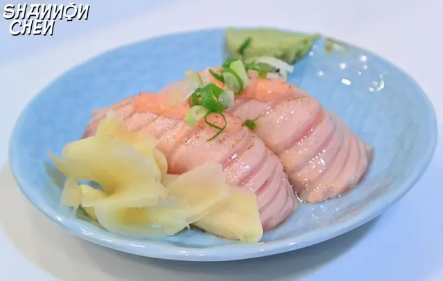 炙燒令人興奮,油期是我只敢吃這樣的生魚片情況下,在看看上方的明太子好像真的很不錯,