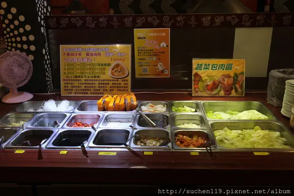 蔬菜包肉區有各式泡菜和生菜