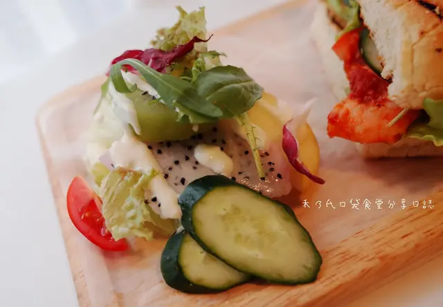 旁邊還有擺盤很精美又具有立體感的生菜沙拉,一早就能吃得無負擔又清爽!