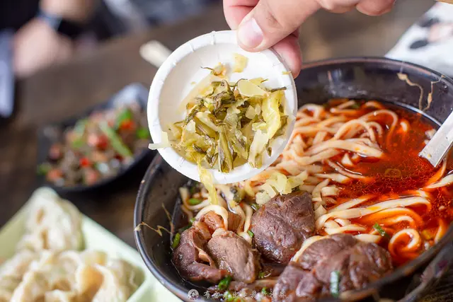 紅燒湯頭搭配略有咬勁的麵條,幾乎近滿分的表現,牛肉也給的蠻多的,用的是牛腱肉,滷的相當透,入口咬下就很有味道,口感上不是那種滷到很爛的,還是略帶有口感,而且完全不卡牙,真的很棒,如果覺得紅燒湯頭還是太重一些的,可以加一點酸菜,會更清爽些。