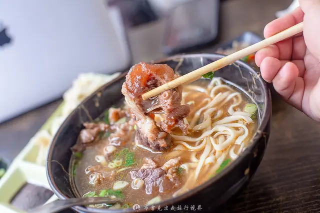 一般點半筋半肉,是給一半牛肉一半牛筋,但《阿忠牛肉麵》直接是給一整塊半筋半肉,肉帶筋口感真的很有層次,咬下去是Q彈的,這種牛肉真的是太棒的,根本就是完美比例,重點份量還是給的超多的,這樣子才賣170元,也太佛了吧!