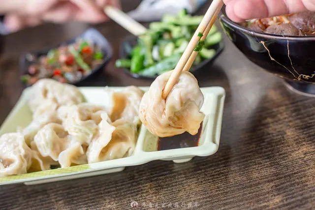 水餃走的是薄皮路線的水餃,然後完全沒有煮破還蠻強的,水餃皮感覺是彈指可破,入口很像是那種皮很薄透光的小籠包,內餡是以高麗菜為主導,吃起來相當的清脆鮮甜,雖然有淋上些許香油,但吃起來完全不會過於油膩,即使不用沾醬就蠻有味道了,果然很強。