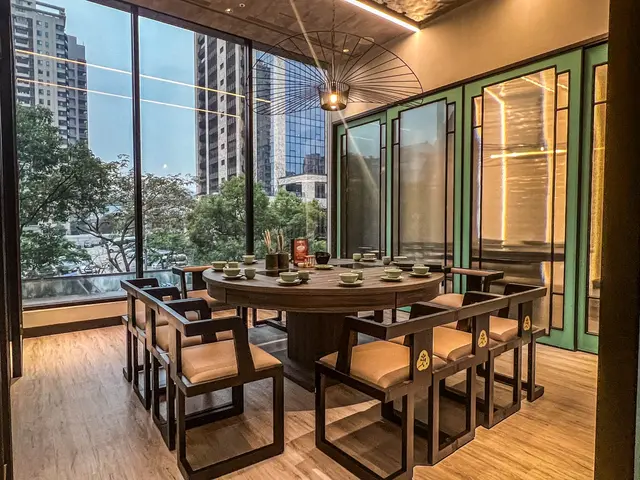 上了二樓就是青花椒的門面,LOGO設計很有中國風,走進大門接待櫃檯充滿濃濃典雅的中式風情,店員親切快速上前帶位,服務非常的好