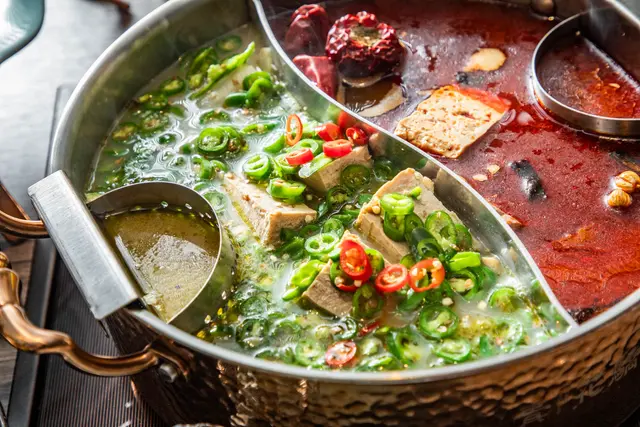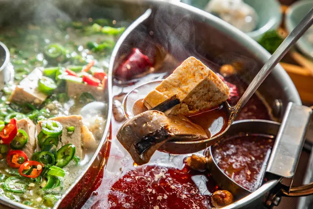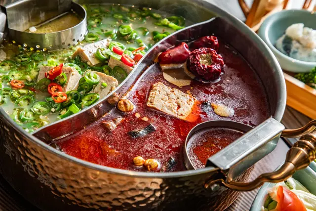 青紅雙鍋,我們選擇鴛鴦鍋,不用考慮直接選青花椒麻辣鍋+青麻椒肥牛鍋吧!
