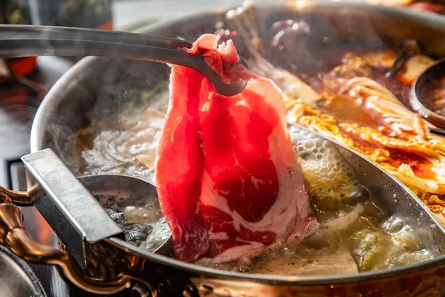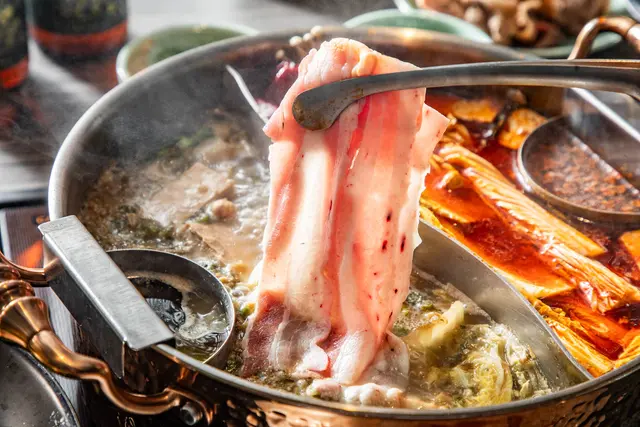 安格斯無骨肩小排,肩小排細緻軟嫩的口感並兼俱香醇風味的完美油花,在青麻椒肥牛鍋裡川燙,川燙3~5分熟後入口,口感香嫩多汁,青麻椒肥牛鍋香氣更加提升襯托出肩小排的肉汁甜味!