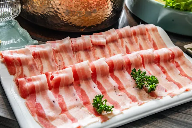 帶皮豬五花,因為這盤肉質非常的肥嫩,有連一層薄薄的皮,看起來肥肉部分好像很多,但實際涮煮卻完全不會油膩,加上帶皮QQ的口感,非常有層次