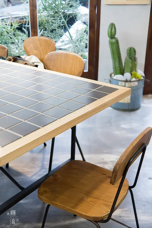 個人很喜歡這張鑲著藍磚的桌子,可惜已經被別組客人訂位了。