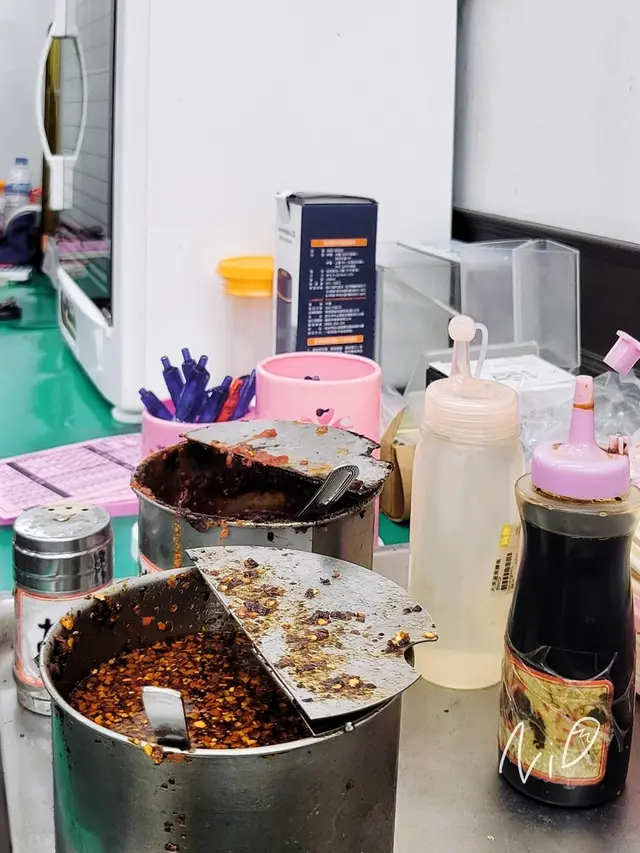 餐具有筷子、湯匙和分食碗,調味料則有辣椒醬、白醋、醬油、胡椒粉