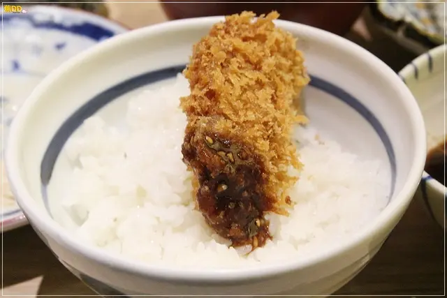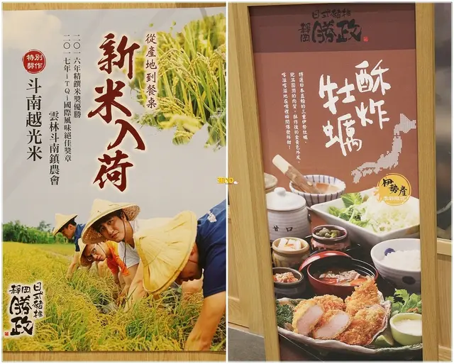 ▼店外可見店家推薦但我們沒有吃的『酥炸牡蠣』外,另外日式豬排最重要的靈魂『米飯』,則是採用國產的『斗南越光米』,說真的吃起來,跟日本米根本同樣好吃啊!!!